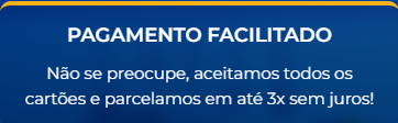 Não se preocupe, aceitamos todos os cartões e parcelamos em até 3x sem juros!
